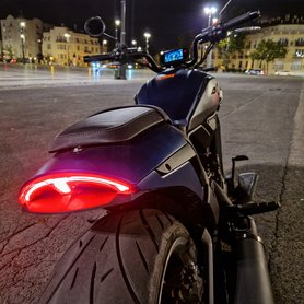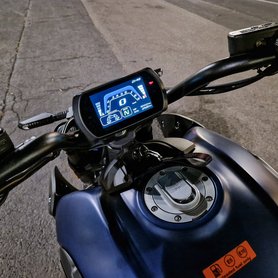 Szinte tökéletes arányok jellemzik a motort, ízléses szín és felületválasztás. Egészen biztos vagyok benne, hogy itt olaszok keze volt a dologban. Ami meglepett, hogy milyen sok olyan elem fém, ami már nagy márkáknál is gyakran csak műanyag. Ez legkésőbb akkor válik egyértelművé, mikor megnézzük, hogy szárazon is 268kg, ami mellé 22 liter üzemanyag (oké, tudjuk, tüzelőanyag) jön még hozzá, vagyis szűk 280kg a mondhatni indulási tömege. Ez igazából a gyorsulásnál és fékezésnél érezhető csak, kanyarokban észre sem venni. A kábelek elvezetései, a felületek, a tapintási- és látványérzet mind kielégítő minőséget sugall. Bejáratott márkáknál is vehetnének ötletet, hogyan kell kábeleket ízlésesen elvezetni, eltüntetni. A lámpák nekem bejönnek: a hátsó egyértelműen nyerő, az elsőnél számomra tetszetősen ötvözték a klasszikus formát a modern és hatékony működéssel, a nappali menetfény pedig vagányan egyszerű.
