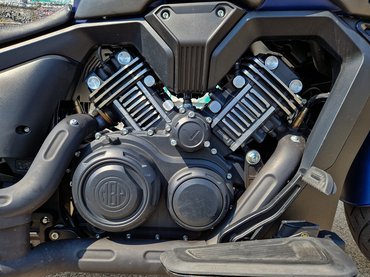 A motorblokk érdekes volt az elején: egészen mást vártam, valami lent odaverő, középen odarúgó és fent szépen elhaló teljesítményleadást. Ehhez képest lent darabos volt, igazi utcaimotoros V2-s, fent meg egy kis élet után egyből arcon csapott a leszabályzás. Viszont középső tartományban nyomatékos, sima járású volt. A blokkhangot a klasszikus utcai Hondákhoz tudnám hasonlítani, amikor csak azt a turbinaszerű surrogást/vinnyogást hallani. Ez valahogy a modern motorokból kiveszőben van, gondolom az anyagvastagságok végtelen optimalizációja miatt. Elképzelhető, hogy a motor tömegéhez a blokk is jelentősen hozzátesz és nem spóroltak ki belőle semmit, innen a finom járás és hang.