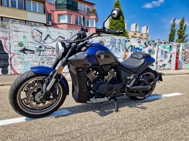 Teljesítmény. Mint power cruiser azért némi tűzijátékot vár az ember a Batman stílusát idéző formához, mert azért van mikor meg kell mutatni a céges superbes faszinak, hogy kinek nagyobb a farka, ugye? Talán mondhatjuk, hogy a kötelező szintet hozza, de több nincs benne. Nem eszementen erős, nem mondanám egy pillanatra, hogy túl sok van benne. Egyszerűen pont arra elég, hogy ha kitolod a szemét, azért rendesen gyorsuljon. Van rajta MODE-gomb, amivel a sportos üzemet tudod bekapcsolni. Ezen a motoron éreztem eddig a legnagyobb különbséget a sima és sport-mód között. Mikor kigyorsításnál benyomtad, rendesen hátbavágott. Igazából már annyira agresszívvé vált így a gép, hogy kis mókázáson kívül sosem használtam, mert megnehezítette a normális közlekedést. Egyébként 180 felett biztosan megy.