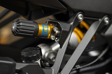 Csak a blokk miatt tehát nem érdemes lecserélni az ezrest, az SE változat okosságai miatt azonban érdemes elgondolkodni rajta. Picivel több mint egymilliós felárért a már említett markolatfűtésen túl Brembo M4-es féknyergeket kapsz, melyek fém fékcsővel kapcsolódnak (japán motoron!) a szintén radiális Nissin munkahengerhez. Nem is lehet belekötni sem a fékerőbe, sem a fékérzetbe. Hátul pedig a minden irányba állítható Öhlins S46-os rugóstag segíthet feledtetni a tényt, hogy elektromos futómű csak a kompresszoros SX-hez kapható.