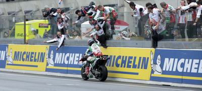 Gyönyörű sporttörténelmi pillanat volt, ahogy Zarco áthajtott a Le Mans-i célvonalon, miközben a több tízezer francia rajongótól szinte felrobbantak a lelátók. Ezúttal tényleg élőben nézhettük azt, amit később emlegetnek majd: 71 éve nem nyert francia pilóta a királykategóriában Le Mans-ban. Zarco a Hondával ráadásul megszakította a Ducati nyerőszériáját is: 22 futam óta kizárólag Ducatival nyertek futamot. Egészen eddig.