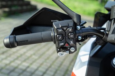 Csakhogy egy motor nem csak hajtóműből áll. A futómű, a fék, az ergonómia, a perifériák olyan kérdéseket szegeznek a gyártónak, amik végül meghatározzák, hogy az a motorozás végül jó-e, amire gyártották. És itt jön a legnagyobb baj: a Zontesnél láthatóan nem sajnálták a mérnöki órát, mert olyan technológiai bemutatót kapunk, hogy a fal adja a másikat. De tényleg: kulcs nélküli indítás, elektromos szélvédő állítás, irányjelzőre kapcsoló oldalsó keresőfény, gyorsváltó, ülésfűtés, markolatfűtés, gyorsváltó... na, érted. Amit szét kellett mérnökölni az ott van.