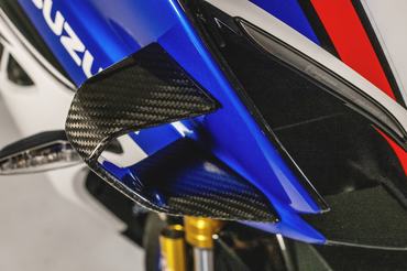A váz alapjai nem változtak: a GSX-R1000R alumínium twin-spar vázzal és alu lengőkarral készül. Újdonság viszont a száraz karbonból szárnyszett, ami persze nem csak dísz, a 2024-es Suzuka 8 órás verseny során szerzett tapasztalatokból csiszolták.