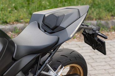 Bogárszem, visszafogott idomzat, ék-far: a Hornet nagyon sok ponton emlékeztet a régire, de a fekete-arany kombináció, a vaskos tank, a nyereg alól megvillanó térhálós váz és a hangsúlyos leömlősor miatt van min legeltetni a szemed. Egy naked komfortban nagy kompromisszum, de a letisztultsága miatt minduntalan vissza fogsz nézni rá, hogy elmerülj a részleteiben, és ezen bőven van műszaki izgalom. Az egyetlen szájkeserítő tényező tényleg csak az, hogy ennyi lóerőt, ezzel a kialakítással nagyjából 4 másodpercig tudsz élvezni, nagy tempónál már nem kívánod sokáig az érkező szelet.