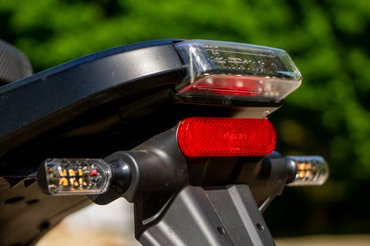 A komfortot és a menetdinamikát nagyban javítja a középre szerelt motor, amely leveszi a terhet a hátsó kerékről, így csökken a rugózatlan tömeg. Elöl teleszkópos, hátul alumínium lengővillás futómű dolgozik, 85 mm-es rugóúttal és 16 colos kerekekkel, ami még a magyar utak kátyúival is megbirkózik – az úthibák kerülgetése inkább opcionális, mint kötelező. Ehhez társul a puha, kényelmes ülés, ami már csak hab a tortán.