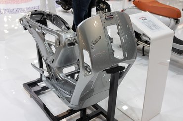 Ha már robogó, a Lambretta standja is látványos volt, ahova elhozták megmutatni a gyártó csővázas-önhordó hibrid vázát, ami alapvetően egy hagyományos robogós csővázra épül, de az acél karosszériaelemek részei a struktúrának, merevítik a szerkezetet, szervizeléshez pedig részben lecsavarozhatók.