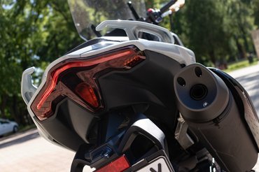Felépítéséből fakadóan nincs alatta komoly rugóút, ráadásul nehéz és sportos, így a futóműhangolás feszes. Ez alapesetben jól hangzik és simára gyalult aszfalton nagyon élvezetes, azonban ahogy romlik a minőség, érzed hogy lebegnek a hatalmas műanyag idomok, és talán még jobban szorítod a présöntött alumínium váz elemeit, mint egy bökős szerpentinezés során. Ezért még csak bántani sem tudom, az anatómiája nyomán a Gyömrői úton motorozva olyan, mintha a dobermantól várnám, hogy másszon fára. Pedig harap, főleg a feszesebb módban, ahol a számítógép nemcsak a markolat gázreakcióját, de a CVT hangolását is agresszívabb irányba tolja.