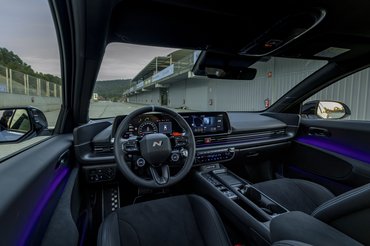 Ha az Ioniq 5N műszaki adataival kelsz és fekszel, sok újdonságot nem tudok mondani, hiszen nagyjából ugyanaz a hajtáslánc került az aerodinamikailag sokkal előnyösebb karosszériába: modern, 800 V rendszerfeszültségű architektúra, 650 lóerő csúcsteljesítmény, 770 Nm nyomaték ugyanazzal az első és hátsó motorral, illetve 84 kWh-s akkuval. Adaptív lengéscsillapítás, hátul elektronikusan vezérelt önzáró differenciálművel, 11 lépésben az első és a hátsó tengely közt állítható hajtáselosztással.