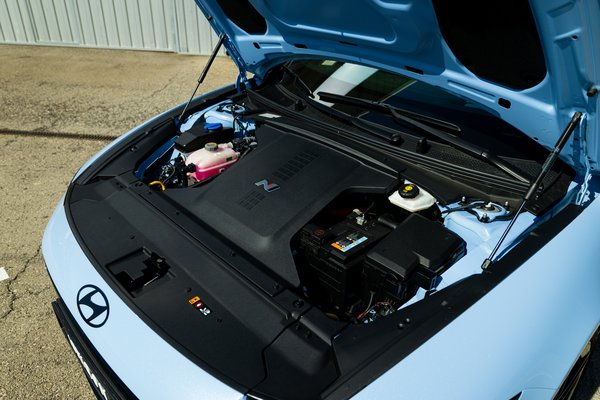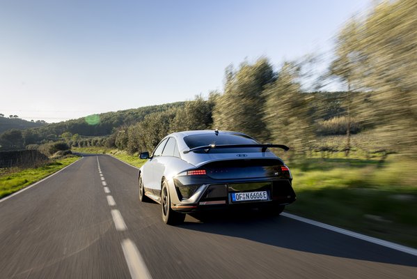 Az eleve szerencsésebb karosszériaforma miatt kevesebb merevítést kellett alkalmazni, de a hátsó ülések mögött így is feltűnik két vaskos merevítő. Alacsonyabb tömegközéppont és kisebb oldaldőlés jellemző a 257 km/h végsebességű Ioniq 6 N-re, viszont hűtési felületből kevesebb jut az 5 N-hez képest, így okosabban kellett csatornázni a levegőt az autó elején. A Cd-érték a kovácsolt alumínium aero felnikkel és a gyári szárnnyal 0,27, elöl 400 milliméteres féktárcsa van négydugattyús féknyereggel, hátul pedig egy 360 milliméteres, sima úszónyerges megoldással.